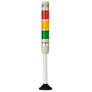 MT5C-3CLPB-RYG Светосигнальная колонна 3-х цветная (красный, желтый, зеленый), питание 220В, диаметр 56мм, постоянное/мигающее свечение + зуммер, стойка+основание