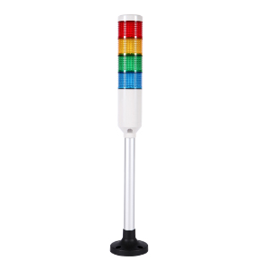 PL4PF-4FF-RYGB Светосигнальная колонна d=45 мм, монтаж на алюм. стойке с пласт. опорой (MAM-B070D), осн. корп. 89 мм (пластик), 4 модуля (LED) пост./мигающ. свечения: красный/жёлтый/зелёный/синий, питание 110…220VAC, IP63
