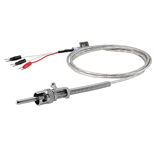 Термосопротивление - температурный датчик типа PT100, который представляет из себя терморезистор и выполнен из сплава платины. Сопротивление температурного датчика PT100 изменяется прямо-пропорционально его температуре и составляет 100 Ом при 0 С. Сопротивление элемента растет с увеличением температуры окружающей среды и наоборот. Линейность характеристики, а также гораздо более высокие показатели по точности и повторяемости результатов измерений, делают термосопротивления востребованными.