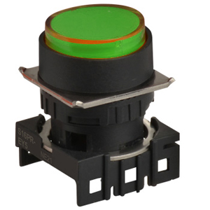 - L16RR-EG Сигнальная лампа круглая, монтажное отверстие: d=16 мм, плафон: выступающий, цвет: зеленый, корпус сигнальной лампы (БЕЗ блока индикации)