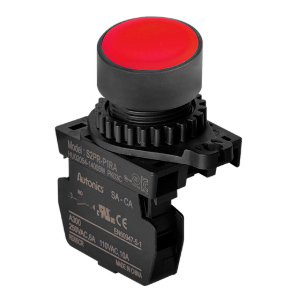 S2PR-P1RA, Кнопки нажатия круглая без подсветки, выступающий тип, диаметр 22/25мм, цвет красный, контакты 1НО