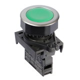 S3PF-P1GA Кнопка нажатия, утопленный тип, под отверстие d=30 мм, цвет кнопки - зеленый, с блоком контактов 1 НО