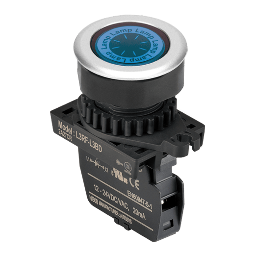 - L3RF-L3BDM Круглая плоская сигнальная лампа, утопленная, LED 12-24VAC/VDC, цвет синий, диаметр 30 мм
