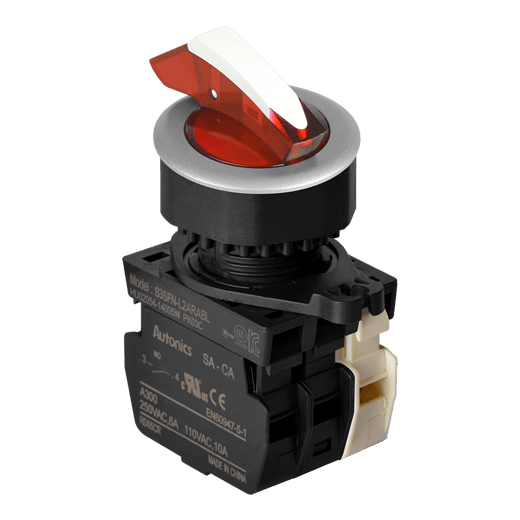 - S3SFN-L Селекторные переключатели с подсветкой, утопленного типа, ручка Shark, диаметр 30 мм