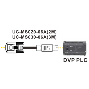 - UC-MS030-06A Кабель связи ПЛК DVP с HMI (RS-232 штекер DB-9 -> mini-DIN), 3м