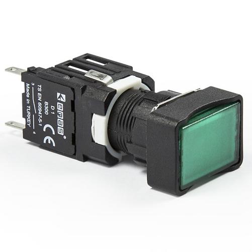 D100DDY Кнопка прямоугольная без фиксации, зеленая (1НО)