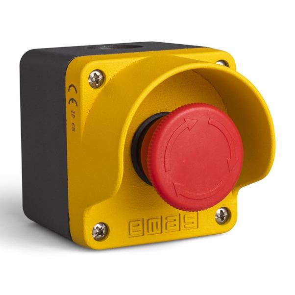 - M1C200E40 Кнопочный пост управления в металлическом корпусе с аварийной кнопкой Грибок Ø40 мм. с фиксацией (1НЗ) IP65