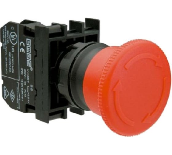 - B200E Кнопка аварийная "Грибок" 40мм с фикс. и возвратом поворотом (1НЗ)