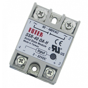 SSR-40DA-H 1-фазное твердотельные реле 40A, U вх. упр. 3-32VDC (вкл/выкл реле), Uвых 90-480VAC, переход через 0