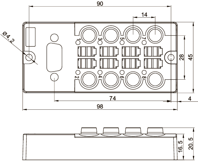 - Разъемы на коробке M8x1x3 пин