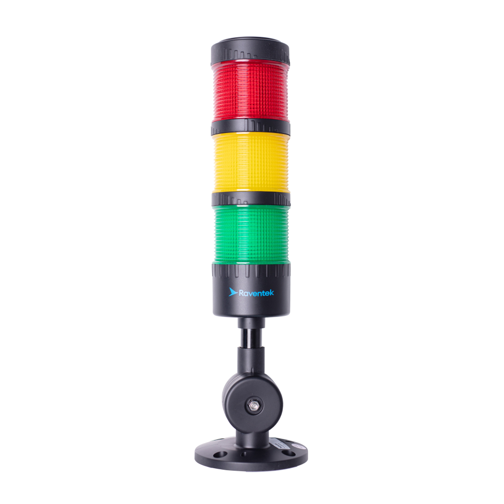 Светосигнальная колонна Raventek упрощает контроль технологических процессов на производстве. Посредством световой индикации оповещает о неполадках, например, поломке техники или выходе контролируемых параметров за пределы допустимых диапазонов. Источник света — LED Светодиоды. Также включает звуковой блок.Оборудование легко монтируется на поверхность и подходит для работы с различным промышленным оборудованием. Номинальное рабочее напряжение составляет 24 DC. Подключение осуществляется через кабель.