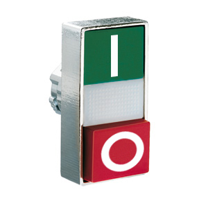 8LM2TBL7223 Толкатель двойной кнопки нажатия с возможностью установки подсветки, в металлическом корпусе, без фиксации, с 1 выст. и 1 утапл. кнопками, (без крепеж.основания...AU120), цвет кнопок: зеленый/красный, символы "I" и "O"