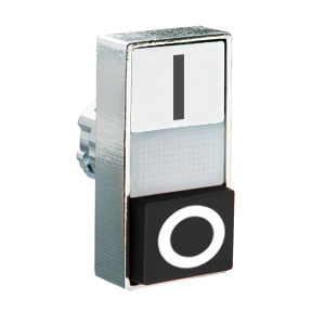 8LM2TBL7224 Толкатель двойной кнопки нажатия с возможностью установки подсветки, в металлическом корпусе, без фиксации, с 1 выст. и 1 утапл. кнопками, (без крепеж.основания ..AU120), цвет кнопок: белый/красный, символы "I" и "O"
