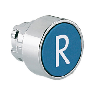 8LM2TB1176 Толкатель кнопки в металлическом корпусе, утапливаемый, без фиксации, (без крепежного основания ..AU120), цвет синиий, с символом "R"
