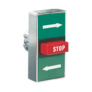 8LM2TB7365 Толкатель тройной кнопки нажатия, в металлическом корпусе, без фиксации, (без крепежного основания ..AU120), символы "вправо, STOP, влево"