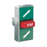 8LM2TB7375 Толкатель тройной кнопки нажатия, в металлическом корпусе, без фиксации, (без крепежного основания ..AU120), символы "стрелка вправо-вверх, STOP, влево-вниз"