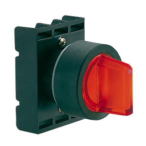 8 LP2T SL1334 Переключатель с подсветкой, пластиковый с короткой ручкой (с монтажным переходником), 3 положения: слева - с фиксацией, справа без фиксации 1-0<2, цвет красный