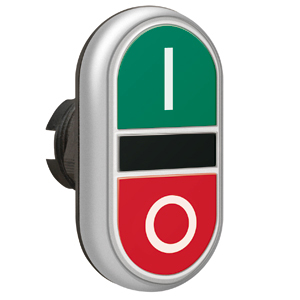 LPCB7123 Двойная кнопка нажатия, 2 плоских кнопки с пружинным возвратом, цвет зеленый/красный, символы I-O