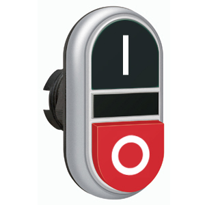 LPCB7222 Двойная кнопка нажатия, 1 выступ. и 1 плоская кнопка с пружинным возвратом, цвет черный/красный, символы I-O