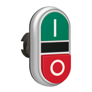 LPCB7223 Двойная кнопка нажатия, 1 выступ. и 1 плоская кнопка с пружинным возвратом, цвет зеленый/красный, символы I-O