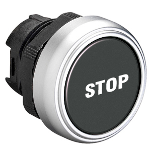 LPCB1132 Толкатель кнопки в пластиковом корпусе, утапливаемый, без фиксации, (без крепежного основания ..AU120), цвет черный, с символом "STOP"