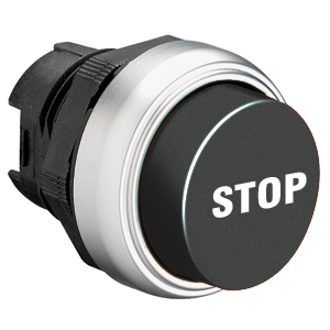 LPCB2132 Толкатель кнопки пластиковый, выступающий тип, без фиксации, (без крепежного основания ..AU120), Вет толкателя: Черный, с символом STOP