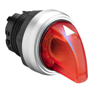 LPCSL1204 Переключатель пластиковый с короткой ручкой, d=22 мм, с подсветкой, (без крепежного основания ..AU120), 2 положения с фиксацией 0-1, цвет красный