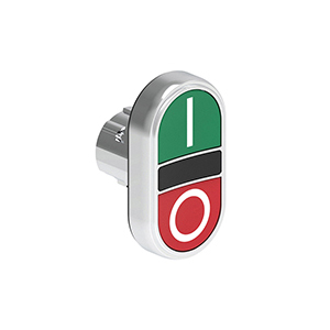 - LPSB7123 Кнопка нажатия с двумя плоскими, утапливаемыми кнопками без фиксации, цвета зеленый-красный с символами I-O, (без крепежного основания LPXAU 120M)
