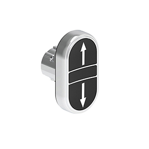 - LPSB7191 Кнопка нажатия с двумя плоскими, утапливаемыми кнопками без фиксации, цвета черный-черный с символами стрелки вверх-вниз, (без крепежного основания LPXAU 120M)