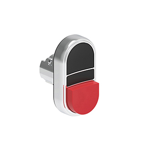 - LPSB7212 Двойная кнопка нажатия с одной выступающей и одной утапливаемой кнопками без фиксации, цвета черный-красный, (без крепежного основания LPXAU 120M)