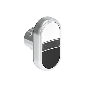 - LPSBL7114 Двойная кнопка нажатия без фиксации с белым световым индикатором, с двумя утопленными кнопками, цвета белый и черный, (без крепежного основания LPXAU 120M)