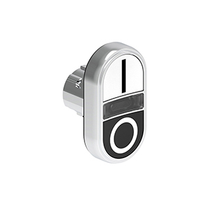 - LPSBL7124 Двойная кнопка нажатия без фиксации с белым световым индикатором, с двумя утопленными кнопками, цвета белый и черный, символы I и O, (без крепежного основания LPXAU 120M)