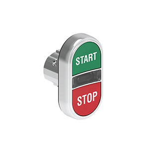 LPSBL7133 Двойная кнопка нажатия без фиксации с белым световым индикатором, с двумя утопленными кнопками, цвета зеленый и красный, символы START и STOP, (без крепежного основания LPXAU 120M)