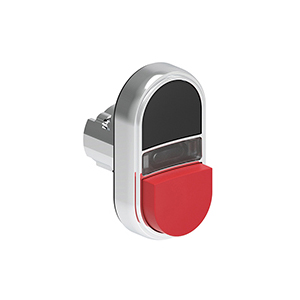 - LPSBL7212 Двойная кнопка нажатия без фиксации с белым световым индикатором, с одной выступающей и одной утопленной кнопками, цвета черный и красный, (без крепежного основания LPXAU 120M)