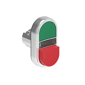 LPSBL7213 Двойная кнопка нажатия без фиксации с белым световым индикатором, с одной выступающей и одной утопленной кнопками, цвета зеленый и красный, (без крепежного основания LPXAU 120M)