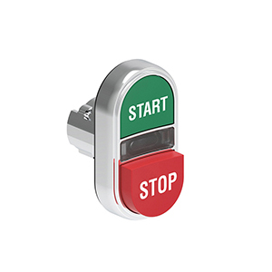 LPSBL7233 Двойная кнопка нажатия без фиксации с белым световым индикатором, с одной выступающей и одной утопленной кнопками, цвета зеленый и красный, символы START и STOP, (без крепежного основания LPXAU 120M)