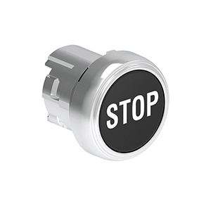 LPSB1132 Нажимная кнопка Platinum диаметром 22 мм, утапливаемая, без фиксации, с пружинным возвратом, символ STOP, цвет черный, (без крепежного основания LPXAU 120M)