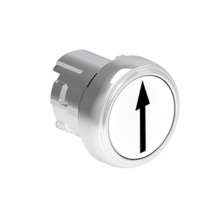 LPSB1158 Нажимная кнопка Platinum диаметром 22 мм, утапливаемая, без фиксации, с пружинным возвратом, символ стрелка вверх, цвет белый, (без крепежного основания LPXAU 120M)