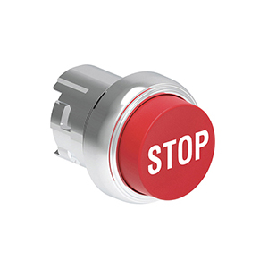 LPSB2134 Нажимная кнопка Platinum диаметром 22 мм, выступающая, без фиксации, с пружинным возвратом, символ STOP, цвет красный, (без крепежного основания LPXAU 120M)
