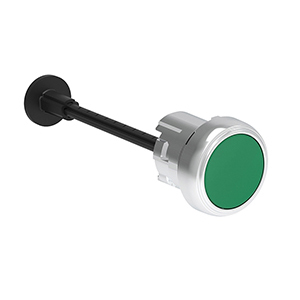 LPSR1003 Нажимная кнопка для механического управления без фиксации, утапливаемый тип (ход 5,2 мм). Регулируемая длина 0...150 мм., в комплекте с стягой, (без крепежного основания LPXAU 120M), цвет зеленый