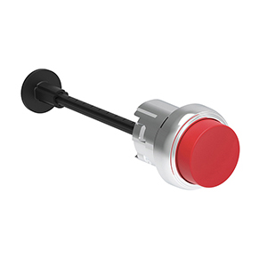 LPSR2004 Нажимная кнопка для механического управления без фиксации, выступающий тип (ход 5,2 мм). Регулируемая длина 0...150 мм., в комплекте с стягой, (без крепежного основания LPXAU 120M), цвет красный