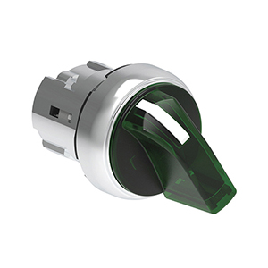LPSSL1323 Металлический переключатель с короткой ручкой, d=22 мм, 3 положения 1>0-2, фиксация в центральном положении и справа, (без крепежного основания LPXAU 120M), цвет зеленый