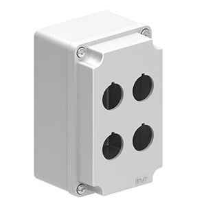 - LPZM4CA8 Корпус для пультов управления на 4 кнопки d=22 мм, металл, серый, 80х170х73 мм, отверстия в два ряда