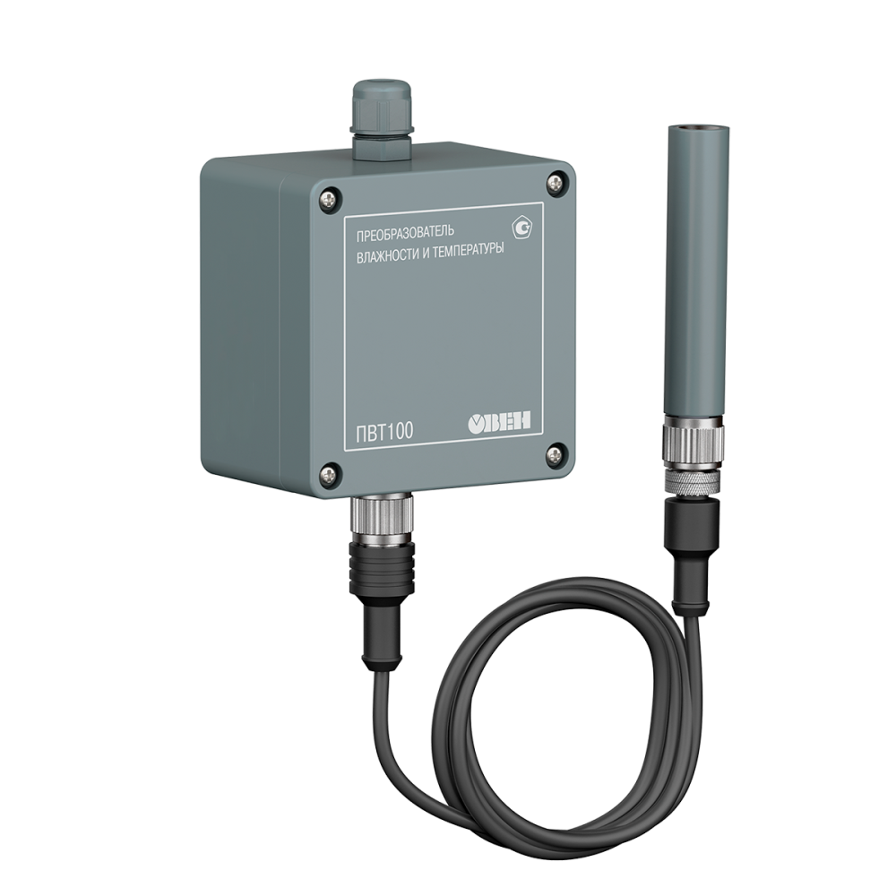 Промышленный датчик влажности и температуры ОВЕН ПВТ предназначен для непрерывного измерения относительной влажности (ОВ) и температуры воздуха или неагрессивного газа и преобразования измеренных значений в зависимости от модели прибора в:- Унифицированные выходные сигналы 4…20 мА или 0…10 В.