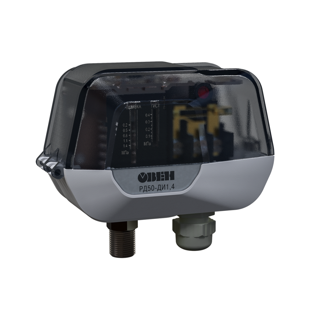 РД55 представляет собой механическое реле перепада давления для коммутации электрических цепей в зависимости от изменения разности двух давлений измеряемой среды. Принцип действия реле состоит в сравнении двух давлений, подаваемых с двух сторон на сильфон, который, деформируясь, переключает однополюсный перекидной контакт. Порог срабатывания реле настраивается пользователем.Реле давления РД55 применяется для контроля работы насосов и отслеживания перепада давления в системах водоснабжения, ИТП, ЦТП, котельных, компрессорной технике и многих других установках и системах.