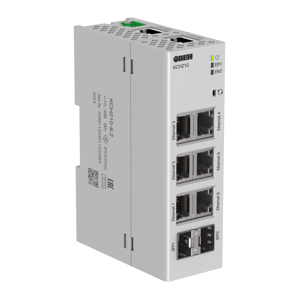 - КСН210-8.2 Промышленный 10-портовый неуправляемый коммутатор: 8 портов 10/100/1000 Мбит/с, 2 порта SFP 100/1000 Мбит/с.
