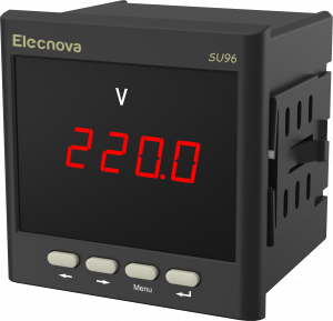 SU96-CJ 380В К 1RS485 2DO Вольтметр 1-фазный, тип индикатора - LED, питание АС/DC 80-270В, размеры лицевой панели 96х96 мм, вырез в щите 91x91 мм, Выходы: RS485 (протокол Modbus-RTU), 2 реленых выхода: 5A, 250VAC, IP64, Tемпература работы -40..+70C