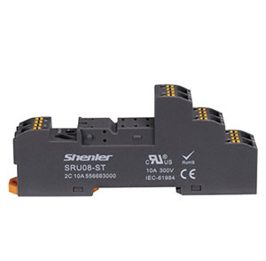 SRU08-ST Колодка (разъём) для реле RFT2CO, установка на DIN рейку, макс. ток 10А. Пластиковый корпус. Puch-in зажим.